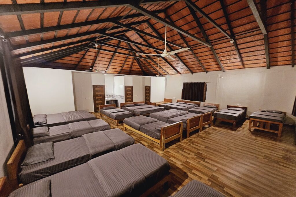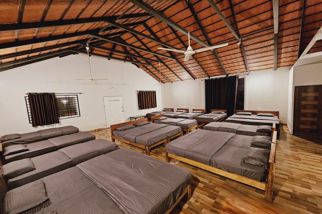 Our Private Dormitory is the perfect choice for large corporate & family groups, offering both privacy and group comfort in one space. Designed to accommodate 13–18 members, it features multiple single beds and the convenience of 4 private attached washrooms. Ideal for bonding, fun, and togetherness all under one roof, this spacious dormitory ensures everyone enjoys a comfortable stay while making unforgettable memories at the resort.